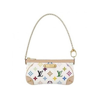 밀라 클러치MM은 다카시 무라카미에 의해 디자인된 모노그램 멀티컬러 캔버스로 제작되었습니다.