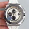 Size: 44 mm Movement: SWISS Audemars Piguet 3126 Automatic Movement 28800bph, SECONDS Running at 12@ Functions: Hours, Minutes, Seconds, Date and Chronograph with SECONDS Running at 12@ Like Genuine Case: Stainless Steel 410L Dial: White Dial Bezel: Ceramic Bezel Crystal: Scratch-proof sapphire crystal with AR coating Strap: Black Rubber Strap Clasp: Deployment Clasp